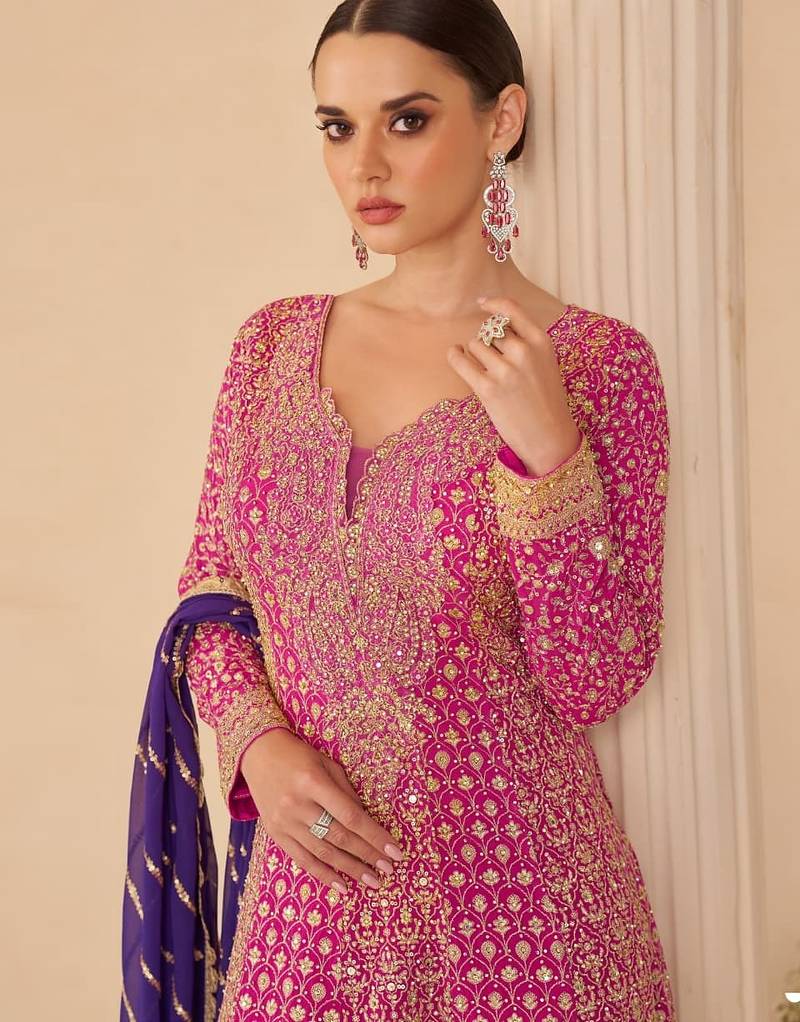 Rose pink pure geogette full stitched suit free size