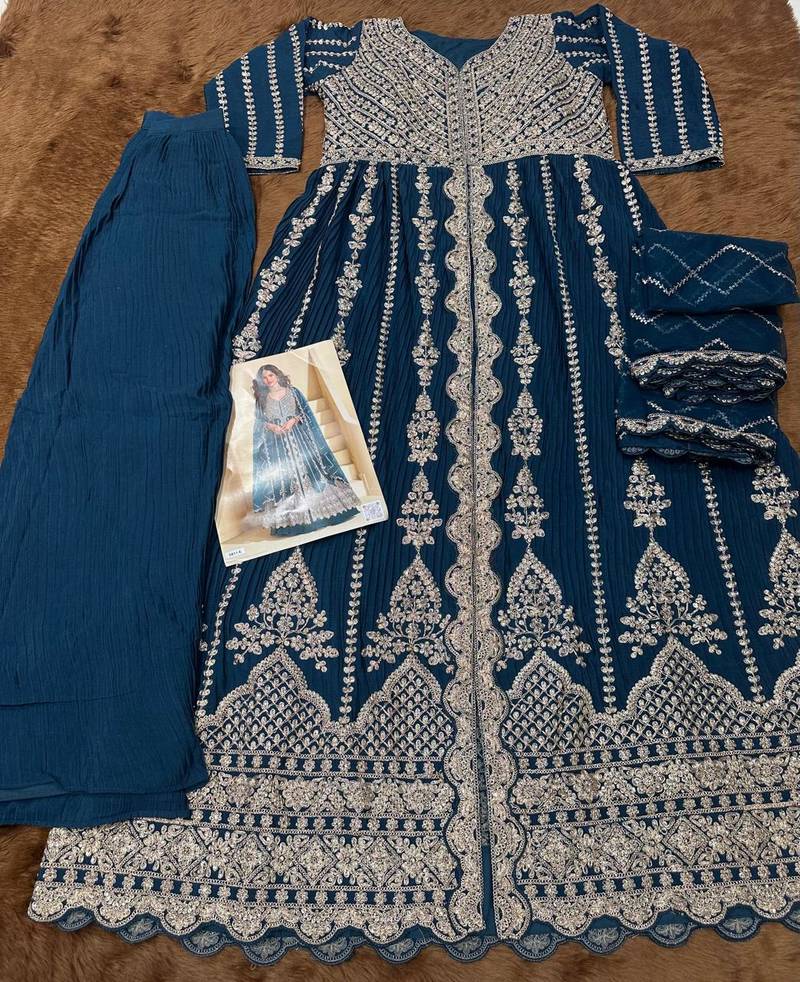 Teal chinon silk heavy embrodiered semi stitched wedding gowns
