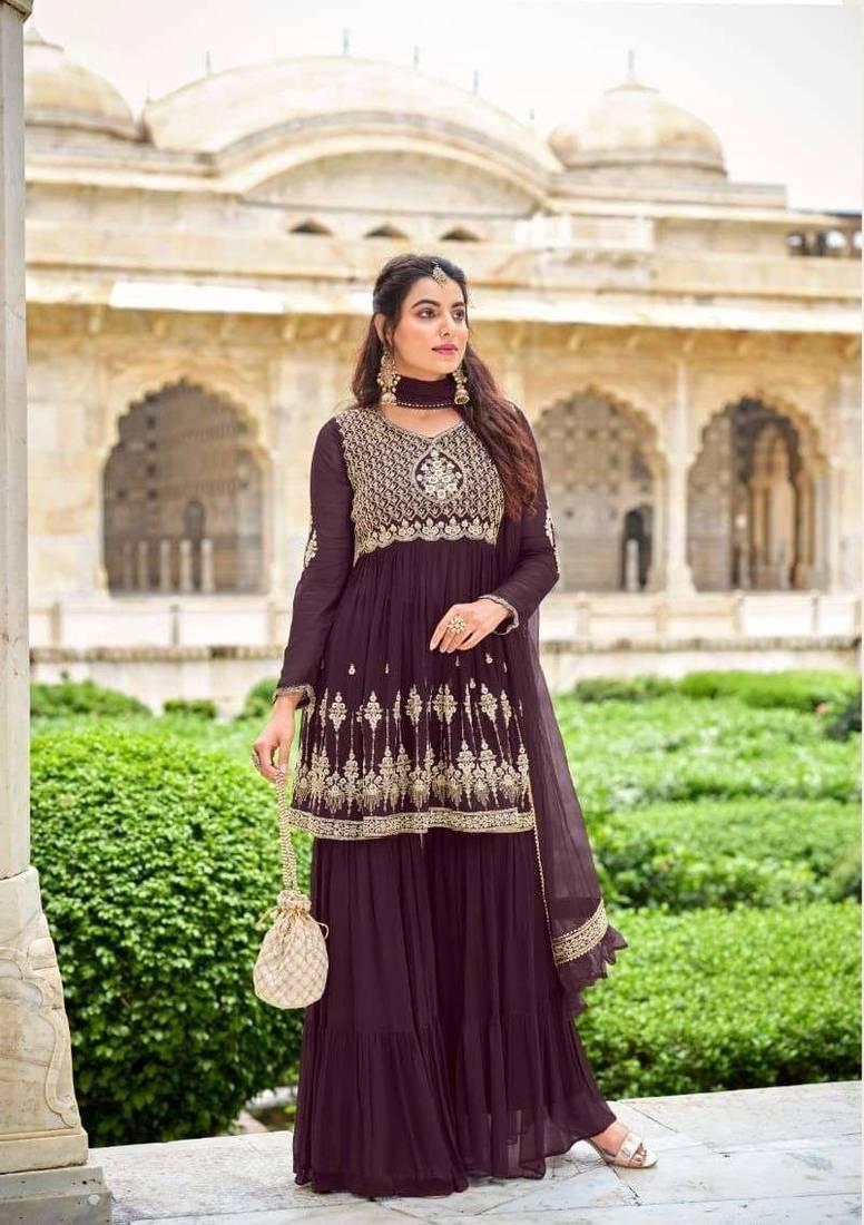 | Product Name | Wine Georgette Full Stitch Wedding Gharara Suits | |