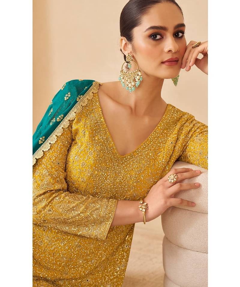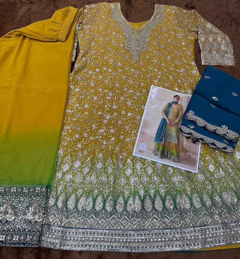 | • | Kameez | : | Color- Yellow / Fabric- Georgette |
