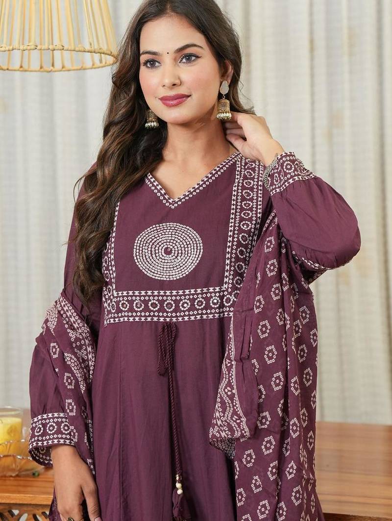 Product Name | Aaysa Women Embroidered Purple Anarkali Kurta Set With Printed Dupatta | |