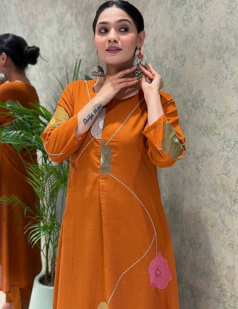 Product Name | Aaysa Women Pure Cotton Embroidered Orange Kurta With Pant And Dupatta | |
