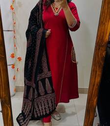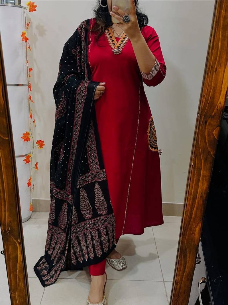 Product Name Women Pure Cotton Embroidered Red Kurta With Pant And Dupatta