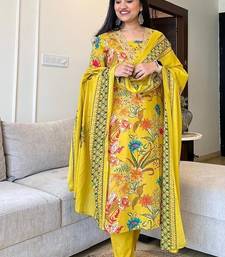 Aaysa women pure cotton embroidered yellow kurta with pant and dupatta