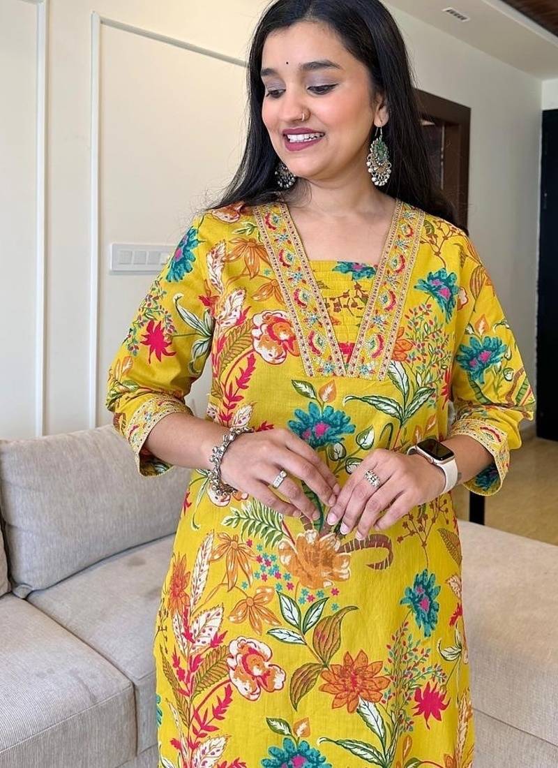 Product Name | Aaysa Women Pure Cotton Embroidered Yellow Kurta With Pant And Dupatta | |
