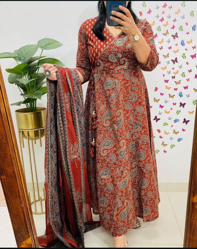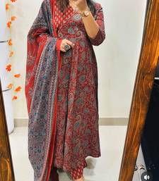 Product Name Women Pure Cotton Printed Red Kurta With Pant And Dupatta