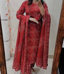 Product Name Women Pure Cotton Printed Red Kurta With Pant And Dupatta