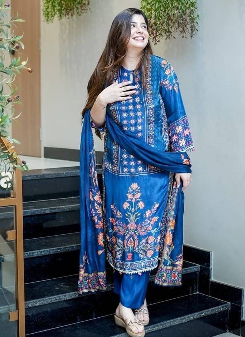 | Product Name | Blue Embroidered Round Neck Muslin Kurta Trouser Dupatta Set | |