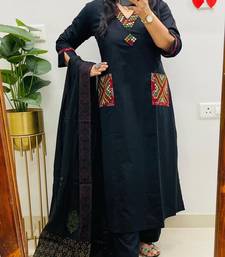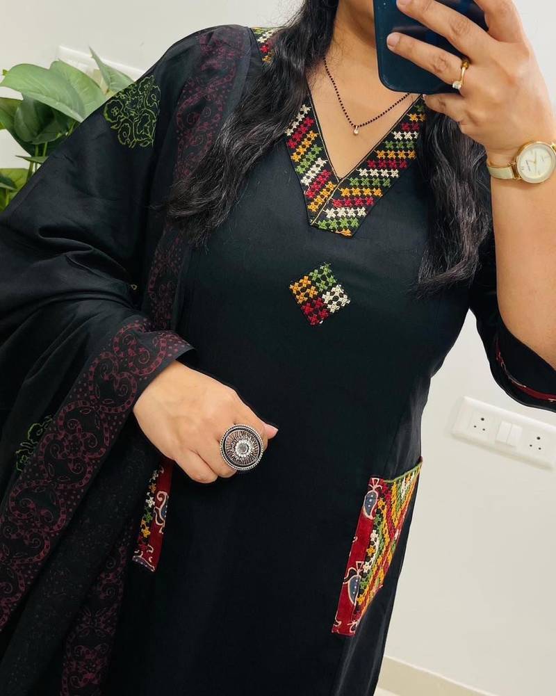 | Product Name | Floral Embroidered Black V Neck Pure Cotton Kurta Set With Trouser & Dupatta | |