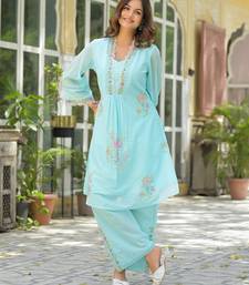 | Product Name | Floral Embroidered Blue V Neck Pure Cotton Kurta With Trouser | |