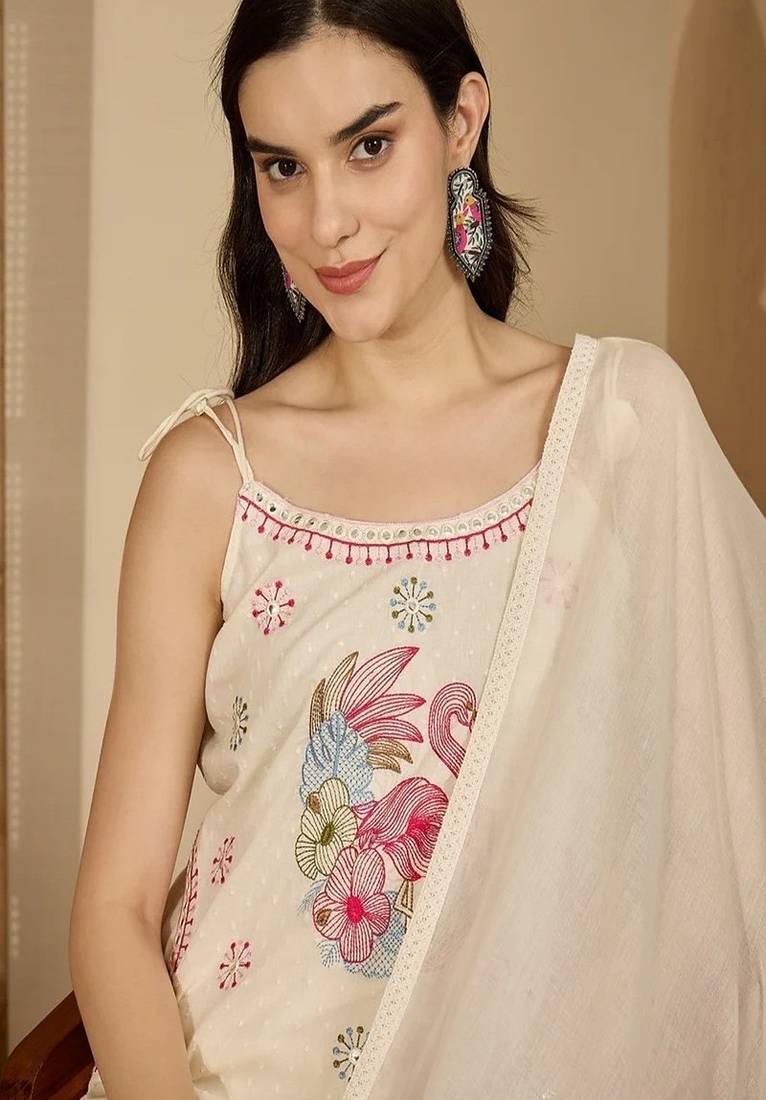 | Product Name | White Embroidered Cotton Kurta Pant With Dupatta | |