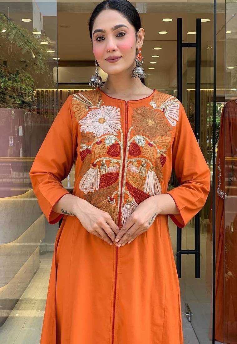 | Product Name | Orange Embroidered Cotton Kurta Pant With Dupatta | |