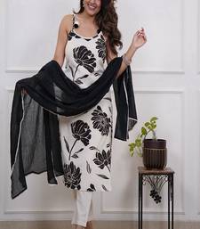 Floral embroidered round neck pure cotton kurta trosuer & dupatta set