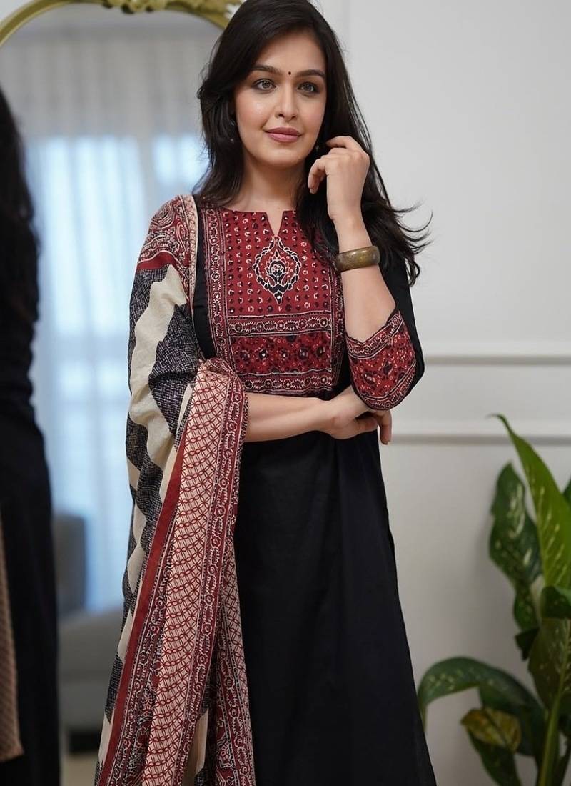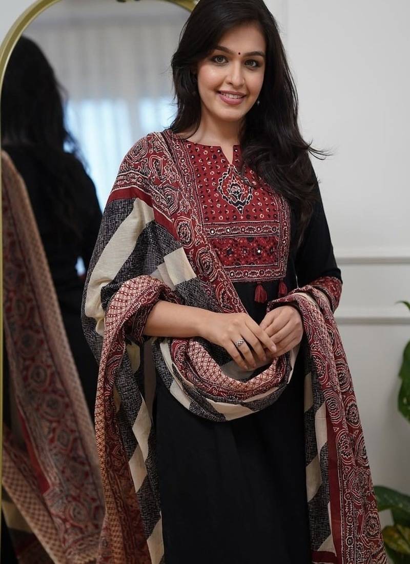 | Product Name | Floral Embroidered Round Neck Pure Cotton Kurta Trosuer & Dupatta Set | |