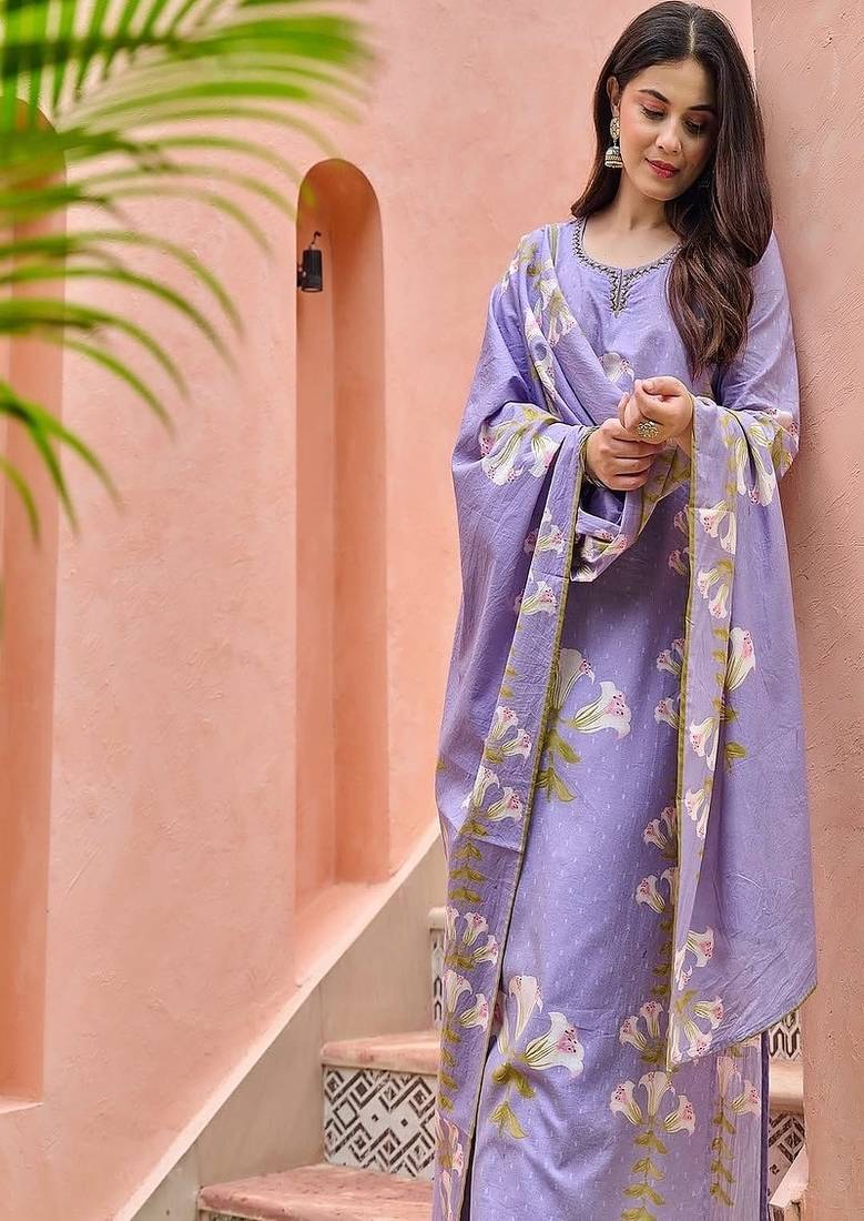 | Product Description | Enhance Your Ethnic Collection With This Elegant Floral Embroidered Round Neck Pure Cotton Kurta, Trouser & Dupatta Set, Designed To Offer The Perfect Blend Of Comfort And Timeless Style. Crafted From 100% Pure Cotton Fabric, This Breathable And Lightweight Three Piece Suit Set Ensures All Day Ease, Making It Ideal For Office Wear, Festive Gatherings, Family Functions, And Everyday Elegance. The Beautifully Detailed Floral Embroidery Adds A Graceful, Handcrafted Charm To The Kurta, While The Classic Round Neckline Provides A Universally Flattering Look. Paired With Comfortable Matching Trousers And A Complementing Dupatta, This Coordinated Cotton Suit Set Creates A Complete And Polished Ensemble With Minimal Styling Effort. Perfect For Warm Weather And Year Round Wear, This Embroidered Cotton Kurta Set Combines Traditional Aesthetics With Modern Comfort. Style It With Statement Earrings And Ethnic Footwear To Create A Sophisticated Look For Any Occasion.100% Pure Cotton Fabric: Soft, Breathable, And Skin Friendly For Superior Comfort. Elegant Floral Embroidery: Intricate Detailing For A Refined And Festive Appeal. Classic Round Neck Design: Timeless Neckline Suitable For All Occasions. Complete 3 Piece Set: Includes Kurta, Matching Trousers, And Coordinated Dupatta. Ideal For Daily & Festive Wear: Perfect For Office, Casual Outings, Celebrations, And Family Gatherings. |