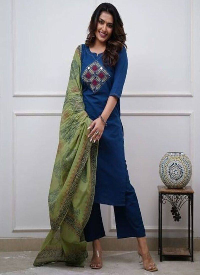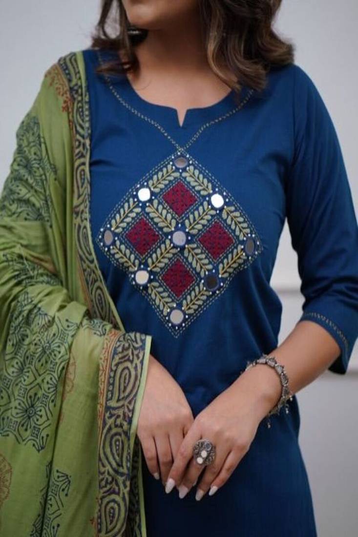 | Product Name | Blue Embroidered Cotton Kurta Pant With Dupatta | |