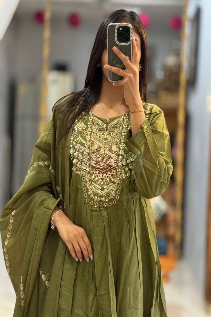 | Product Description | Upgrade Your Ethnic Wardrobe With This Elegant Floral Embroidered U Neck Pure Cotton Kurta, Trouser & Dupatta Set, Designed To Deliver Both Comfort And Timeless Style. Made From 100% Pure Cotton Fabric, This Breathable And Skin Friendly Three Piece Suit Set Ensures All Day Comfort, Making It Ideal For Office Wear, Casual Outings, Festive Gatherings, And Family Functions. The Beautifully Crafted Floral Embroidery Adds A Graceful And Refined Touch, Enhancing The Traditional Appeal Of The Ensemble. The Flattering U Neck Design Creates A Soft, Feminine Silhouette, While The Coordinated Trousers And Matching Dupatta Complete The Look Effortlessly. Lightweight And Easy To Carry, This Cotton Kurta Set Is Perfect For Warm Weather And Year Round Wear. Whether You're Dressing Up For A Celebration Or Keeping It Elegant For Daily Wear, This Embroidered Cotton Suit Set Offers The Perfect Blend Of Sophistication And Practicality. 100% Pure Cotton Fabric: Soft, Breathable, And Comfortable For Long Hours Of Wear. Elegant Floral Embroidery: Intricate Detailing For A Graceful Ethnic Look. Flattering U Neck Design: Stylish Neckline That Enhances The Overall Silhouette. Complete 3 Piece Ensemble: Includes Kurta, Matching Trousers, And Dupatta. Versatile Occasion Wear: Perfect For Office, Festive Events, Casual Gatherings, And Daily Wear. |