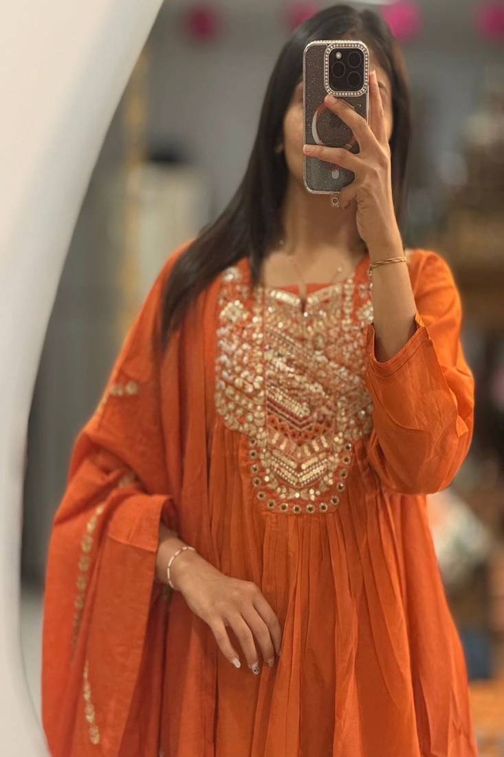 | Product Description | Upgrade Your Ethnic Wardrobe With This Elegant Floral Embroidered U Neck Pure Cotton Kurta, Trouser & Dupatta Set, Designed To Deliver Both Comfort And Timeless Style. Made From 100% Pure Cotton Fabric, This Breathable And Skin Friendly Three Piece Suit Set Ensures All Day Comfort, Making It Ideal For Office Wear, Casual Outings, Festive Gatherings, And Family Functions. The Beautifully Crafted Floral Embroidery Adds A Graceful And Refined Touch, Enhancing The Traditional Appeal Of The Ensemble. The Flattering U Neck Design Creates A Soft, Feminine Silhouette, While The Coordinated Trousers And Matching Dupatta Complete The Look Effortlessly. Lightweight And Easy To Carry, This Cotton Kurta Set Is Perfect For Warm Weather And Year Round Wear. Whether You're Dressing Up For A Celebration Or Keeping It Elegant For Daily Wear, This Embroidered Cotton Suit Set Offers The Perfect Blend Of Sophistication And Practicality. 100% Pure Cotton Fabric: Soft, Breathable, And Comfortable For Long Hours Of Wear. Elegant Floral Embroidery: Intricate Detailing For A Graceful Ethnic Look. Flattering U Neck Design: Stylish Neckline That Enhances The Overall Silhouette. Complete 3 Piece Ensemble: Includes Kurta, Matching Trousers, And Dupatta. Versatile Occasion Wear: Perfect For Office, Festive Events, Casual Gatherings, And Daily Wear. |