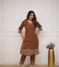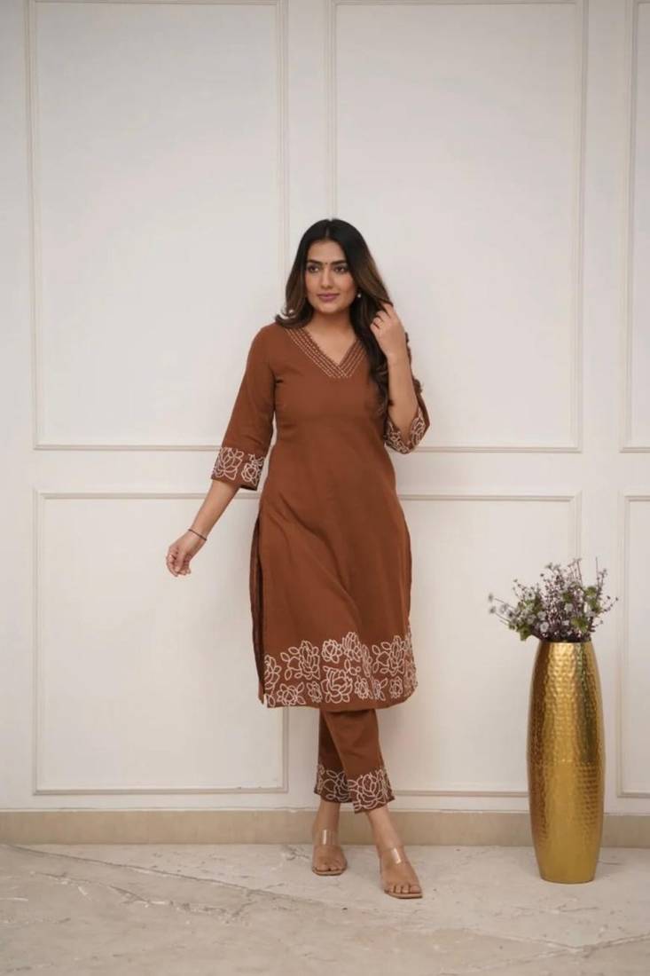 | Product Name | Brown Floral Embroidered Cotton Kurta With Trouser | |