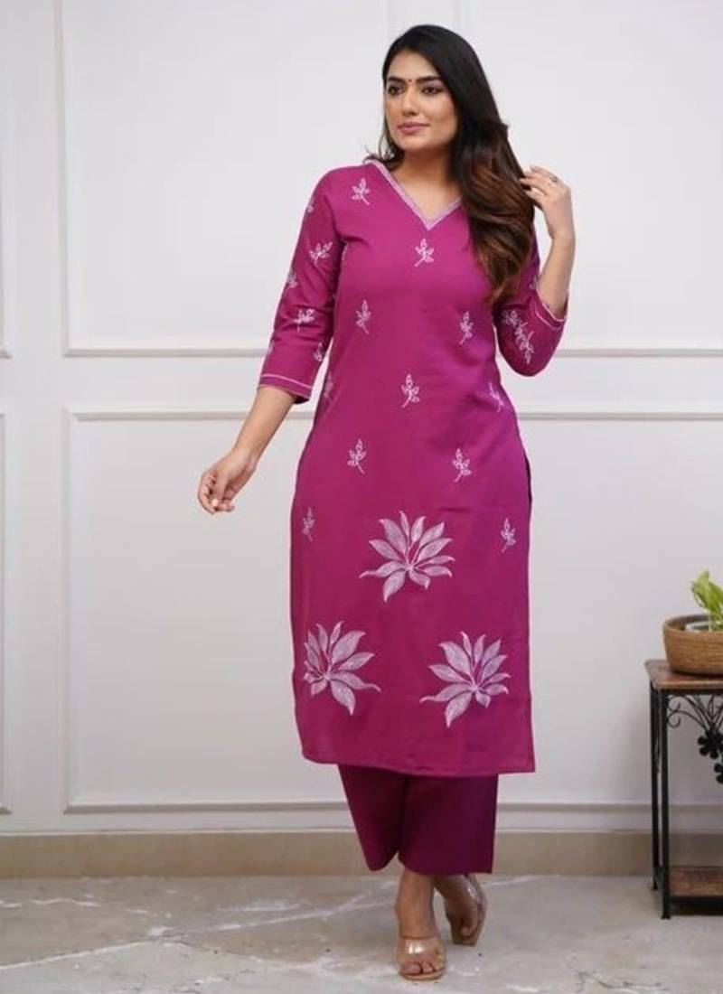 | Product Name | Pink Floral Embroidered Cotton Kurta With Trouser | |