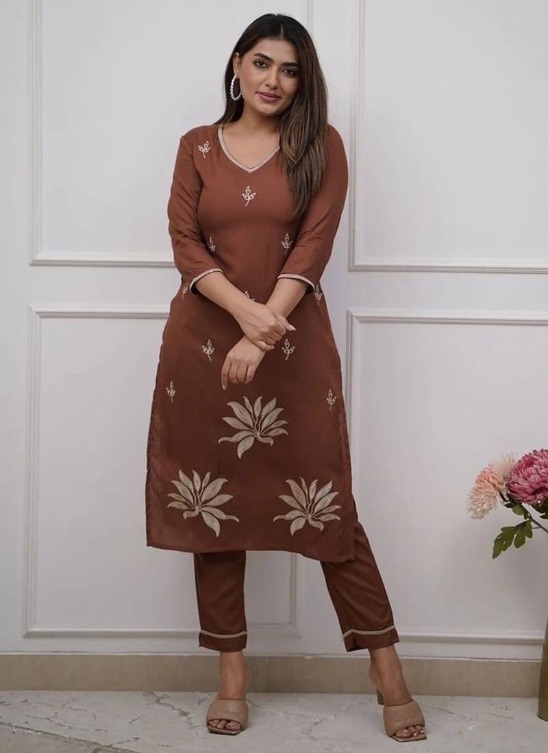 | Product Name | Brown Floral Embroidered Cotton Kurta With Trouser | |