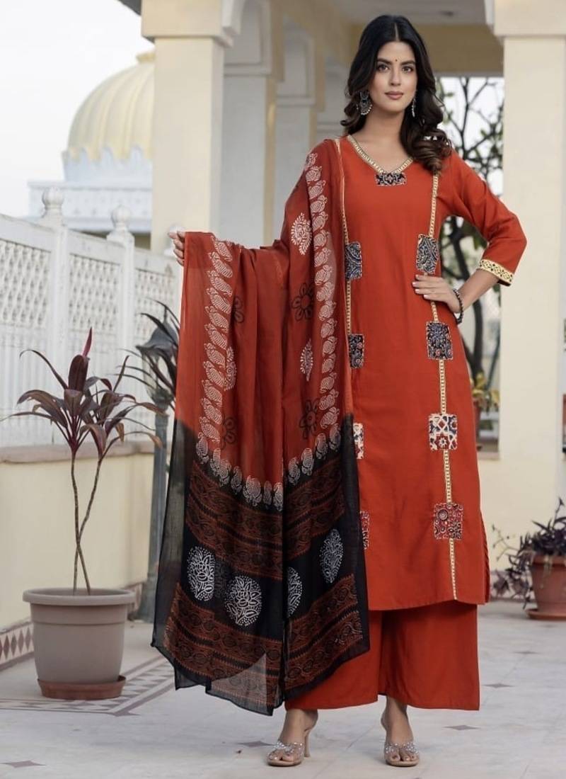 | Product Name | Orange Floral Printed Cotton Kurta Trouser And Dupatta Set | |