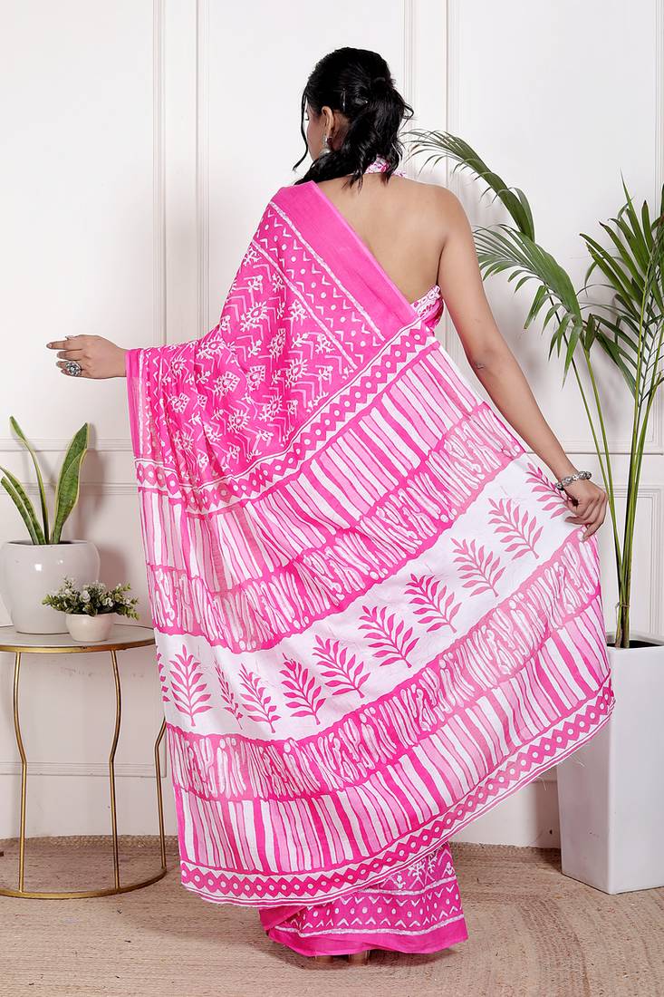 | • | Saree | : | Color- Pink / Fabric- Pure Cotton |