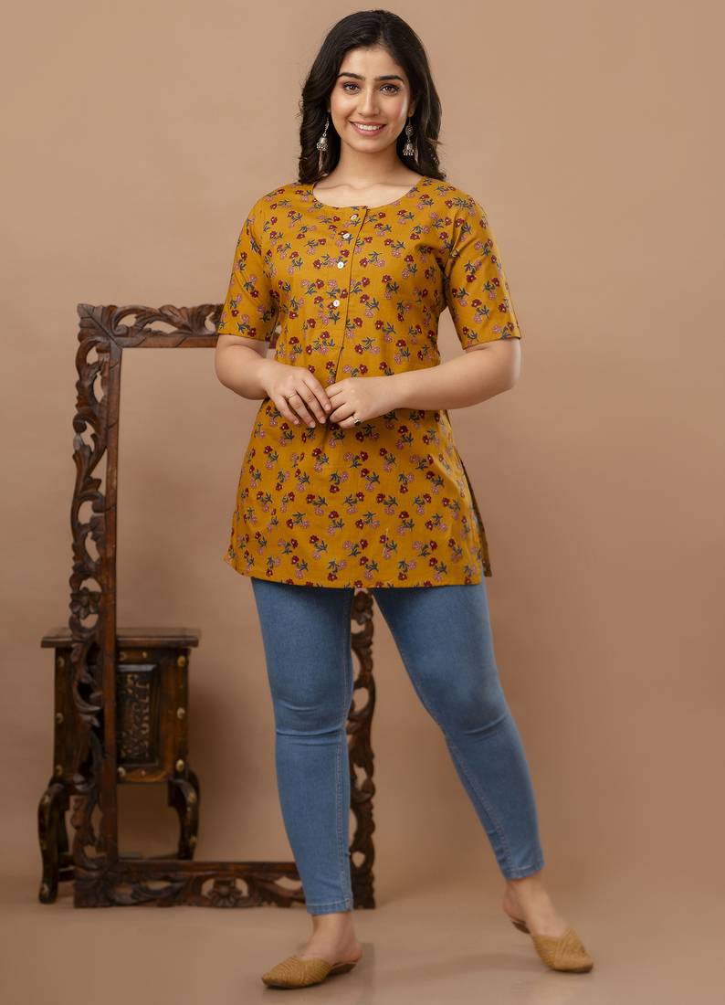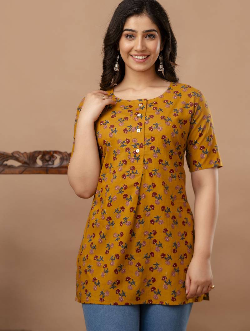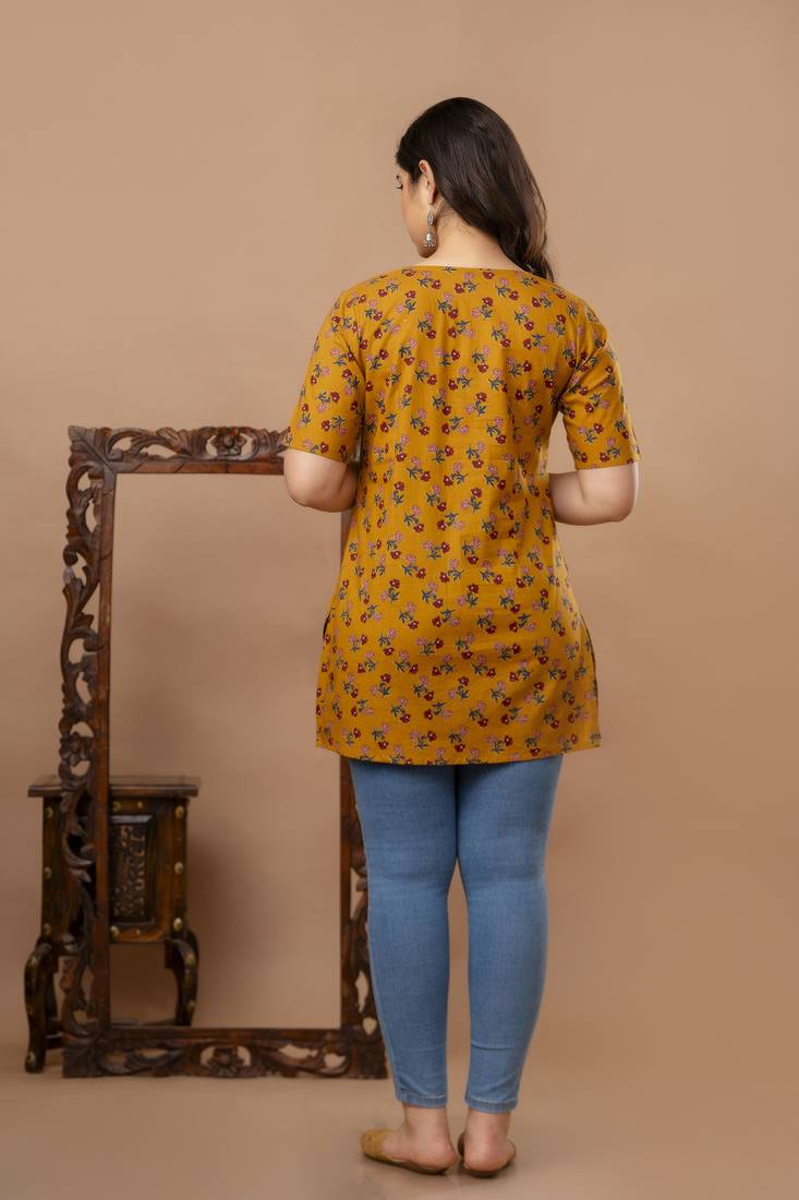 | Product Name | Floral Printed Pure Cotton Yellow Jaipuri Tunic | |