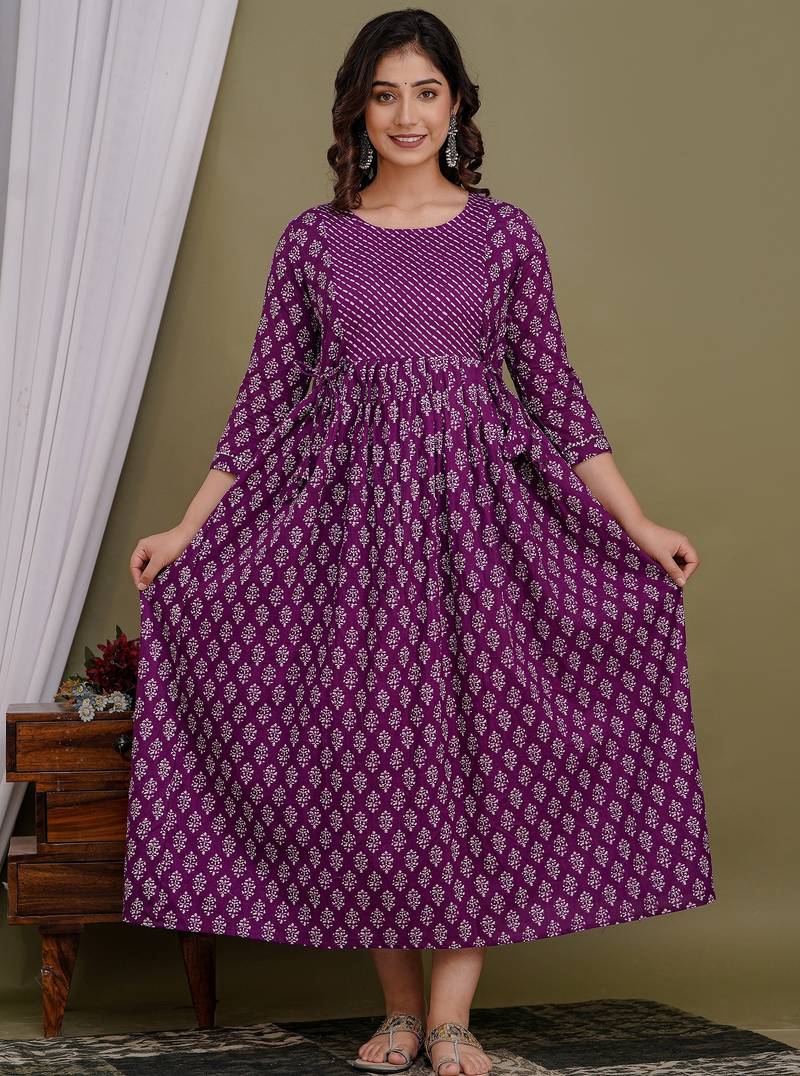 | Product Name | Floral Printed Purple Pure Cotton Flared Maternity Maxi Dress | |