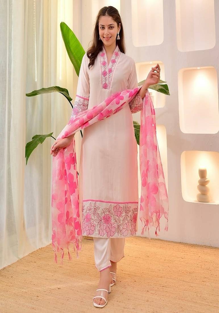 | Product Name | White Embroidered V Neck Pure Cotton Kurta Trouser Dupatta Set | |