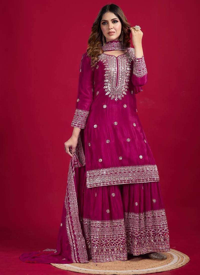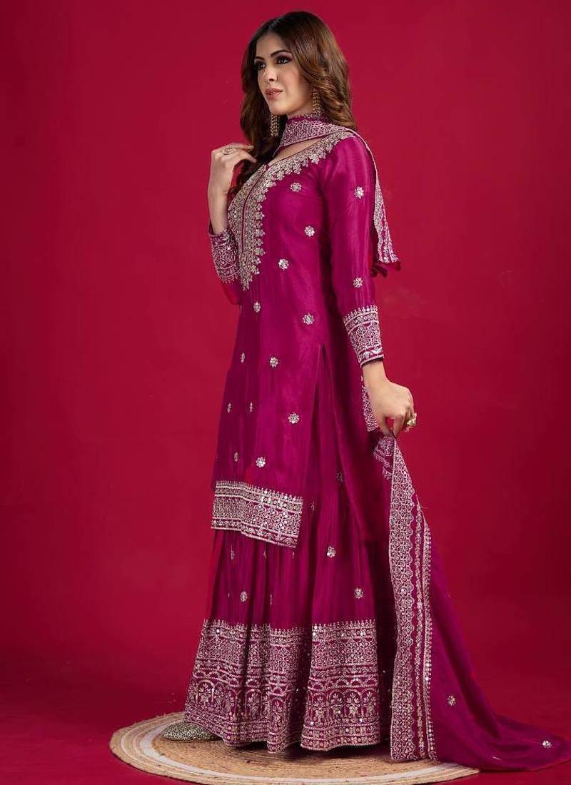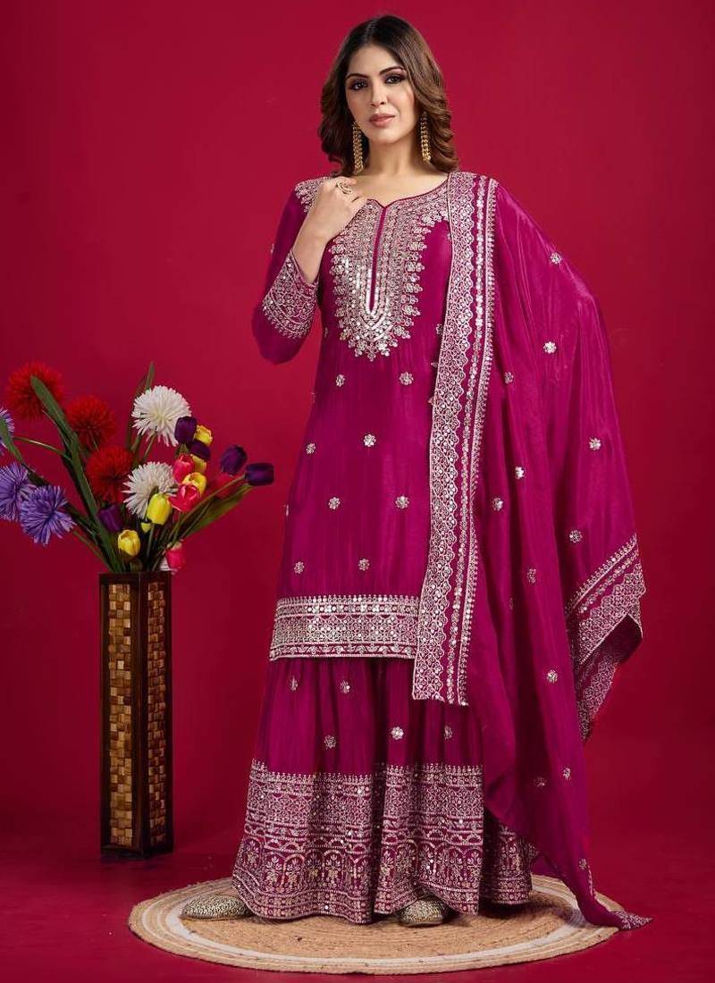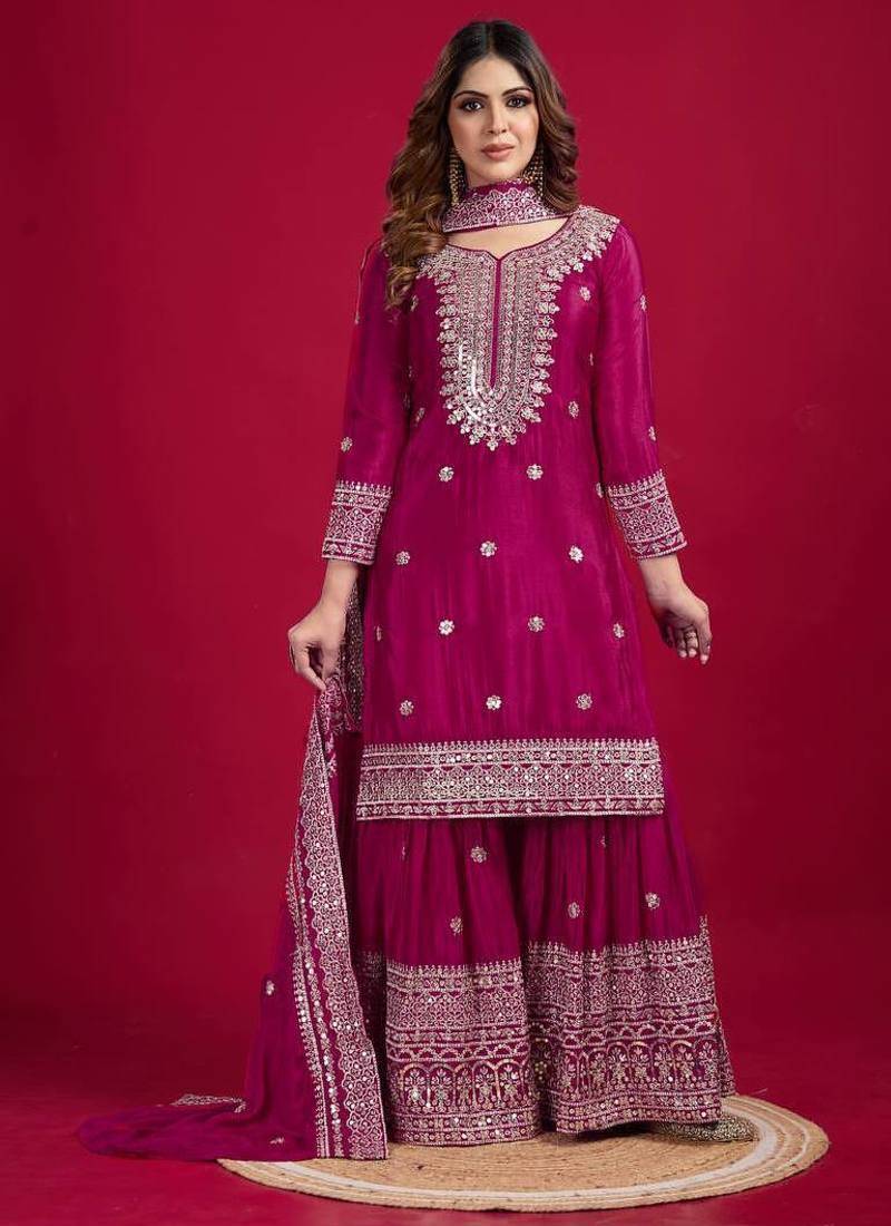 Product Name | Chinnon Silk Embroidery Sequence Work Top Plazo And Dupatta Set | |
