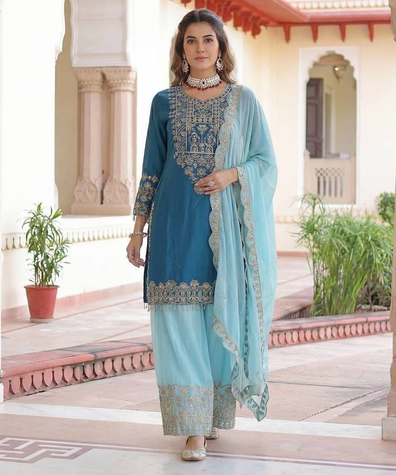 | • | Dupatta | : | Color- Sky Blue / Fabric- Chiffon |