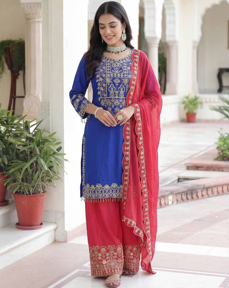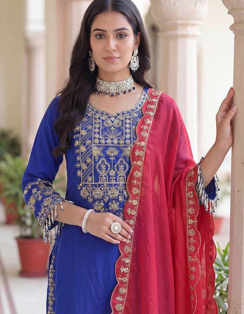 Chinon silk salwar suit dupatta stitched