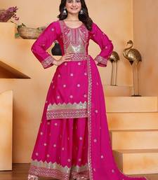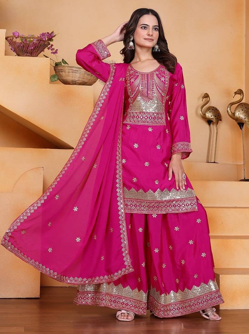 Designer chinnon embroidered sharara suit stitched