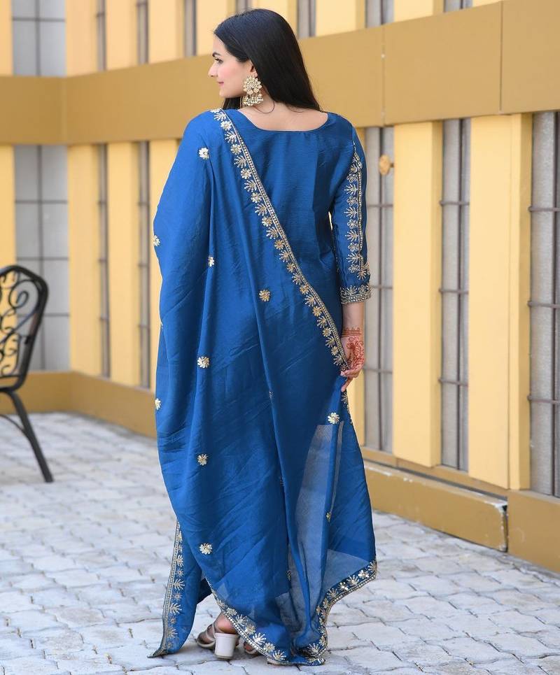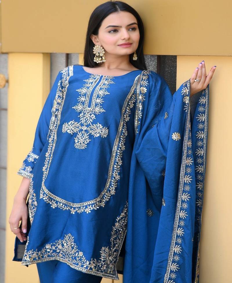 Product Name | Designer Chinon Suit With Sequence Embroidered Work | |