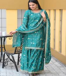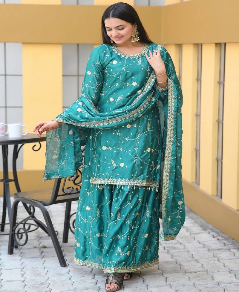 Designer chinon suit with sequence embroidered work stitched