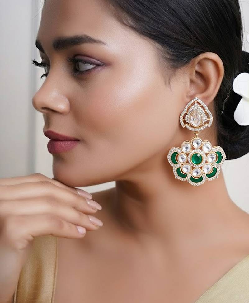 | Product Name | Women Traditional Gold Finish Kundan Polki Featuring Green Stones | |