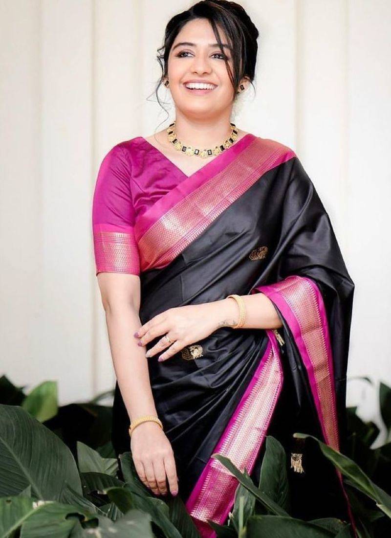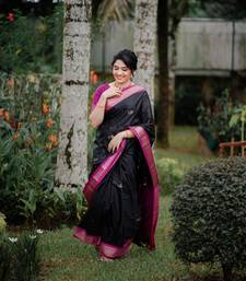 Black pink soft art silk banarasi jacuard work designer party wear saree with unstitched blouse piece