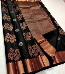 Black soft silk blend banarasi jacuard work designer party wear saree with unstitched blouse piece