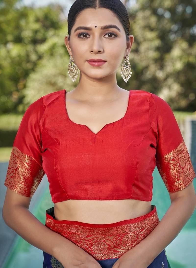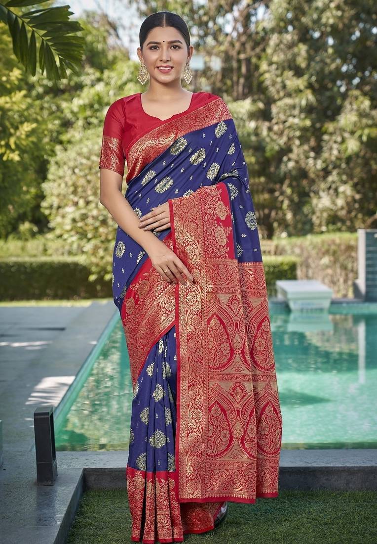 blue soft art silk banarasi saree with blouse