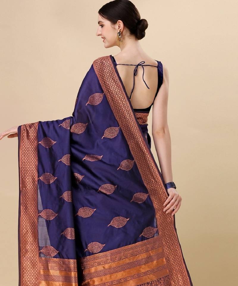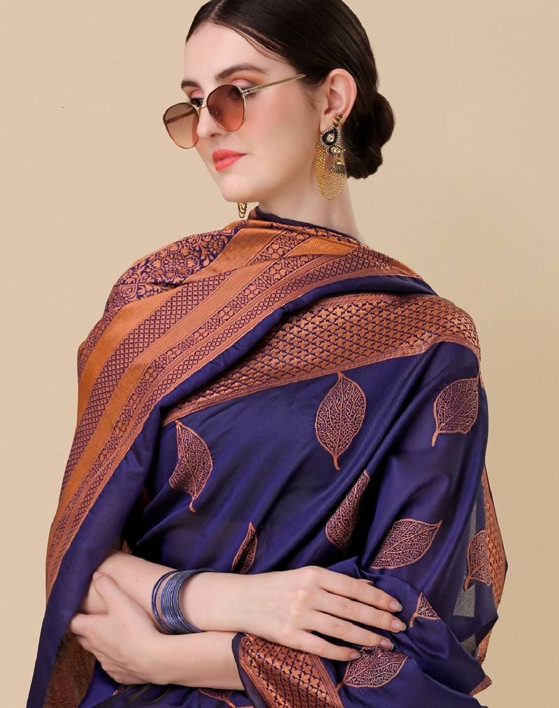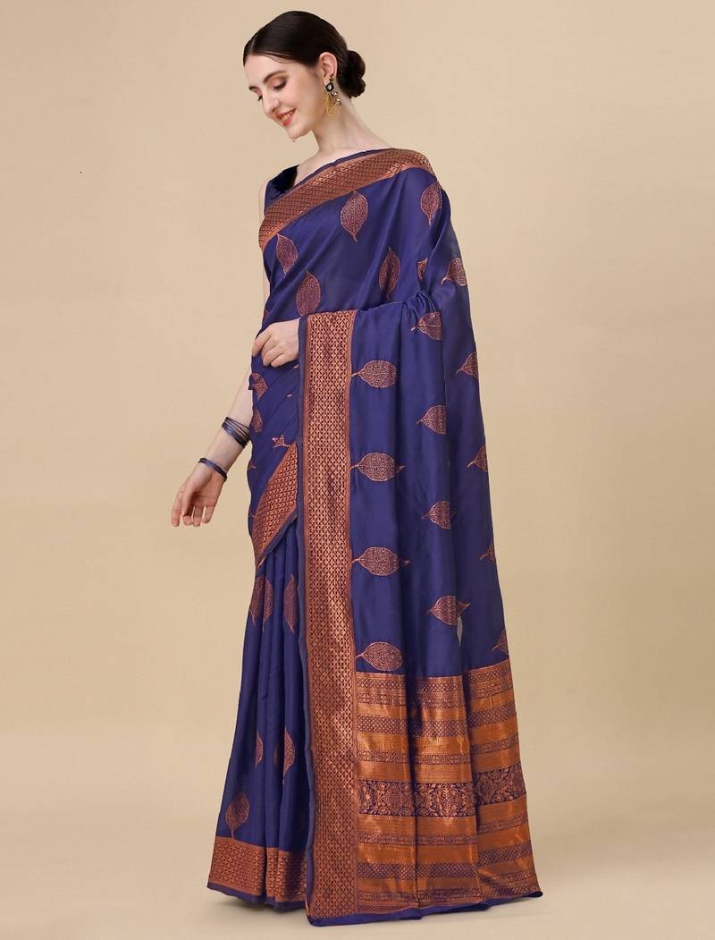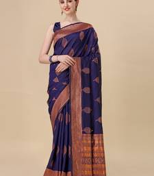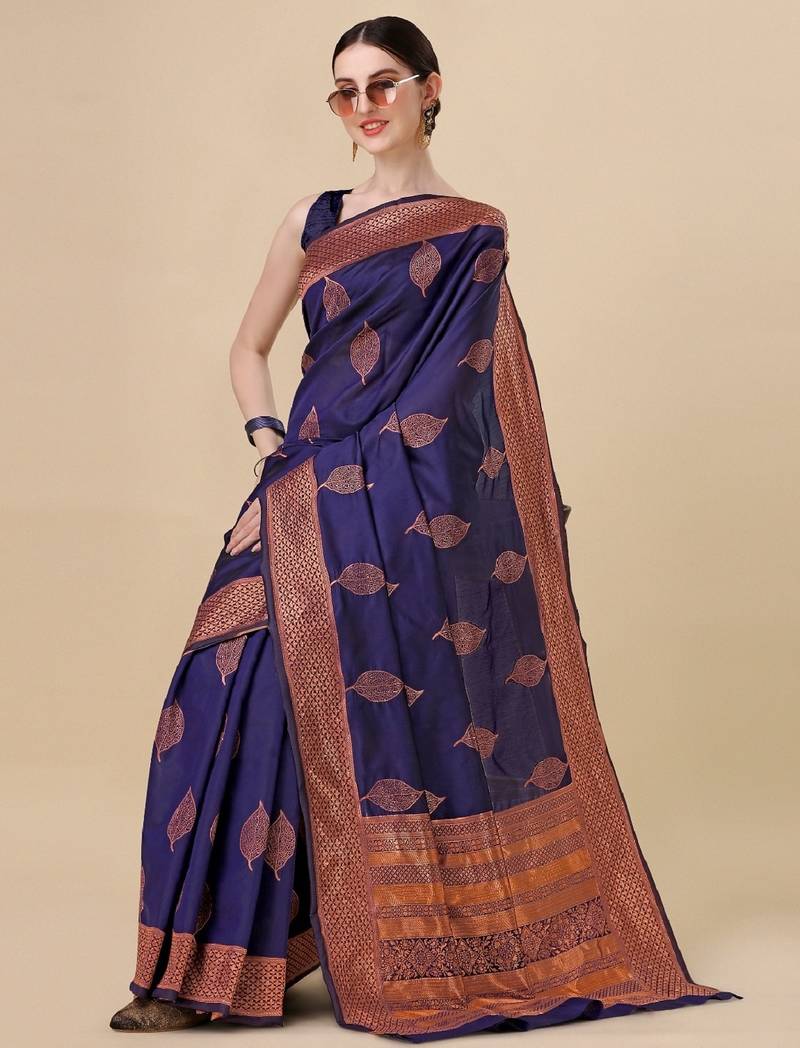 Blue soft silk blend banarasi jacuard work designer party wear saree with unstitched blouse piece