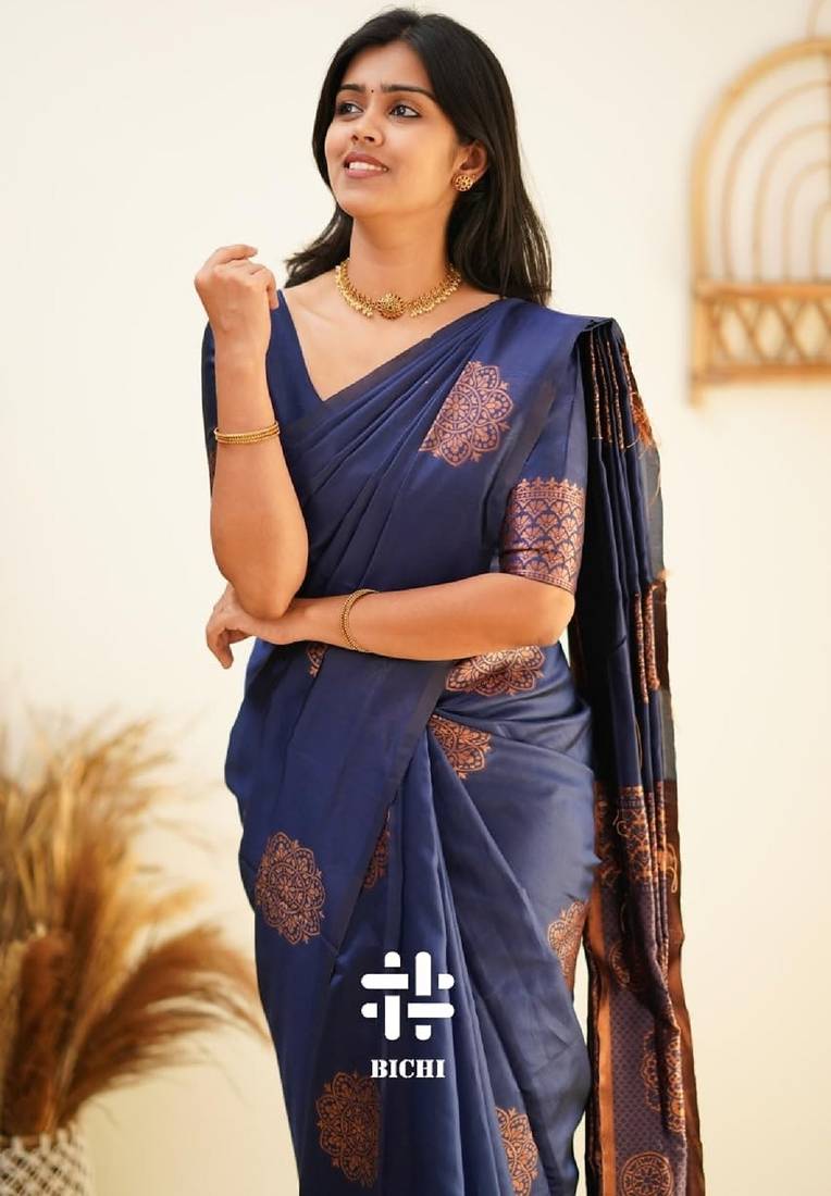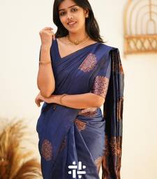 Blue soft silk blend banarasi jacuard work designer party wear saree with unstitched blouse piece