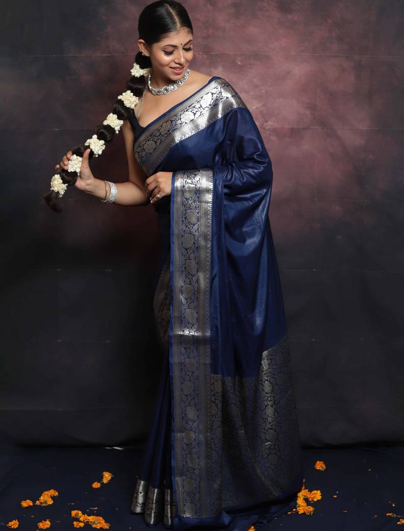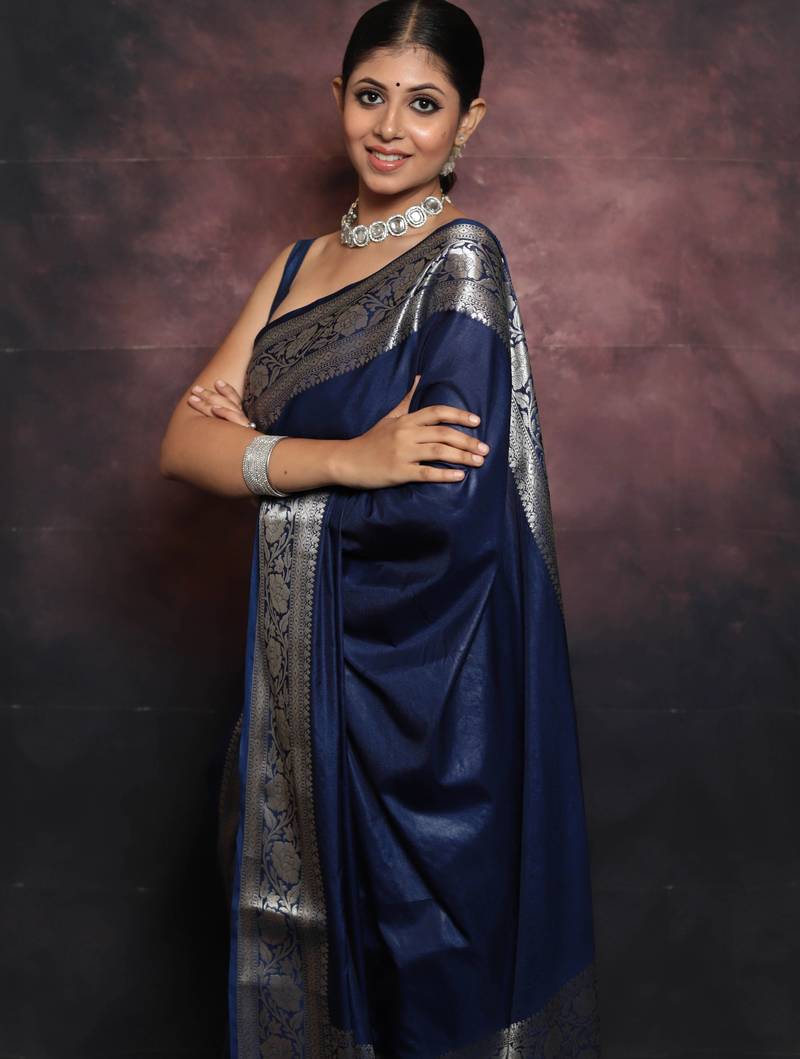 Saree : Color- Blue / Fabric- Banarasi Silk