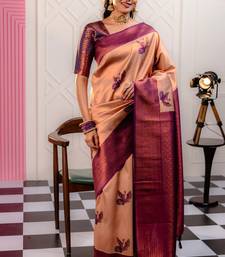 Cream wine soft art silk banarasi jacuard work designer party wear saree with unstitched blouse piece