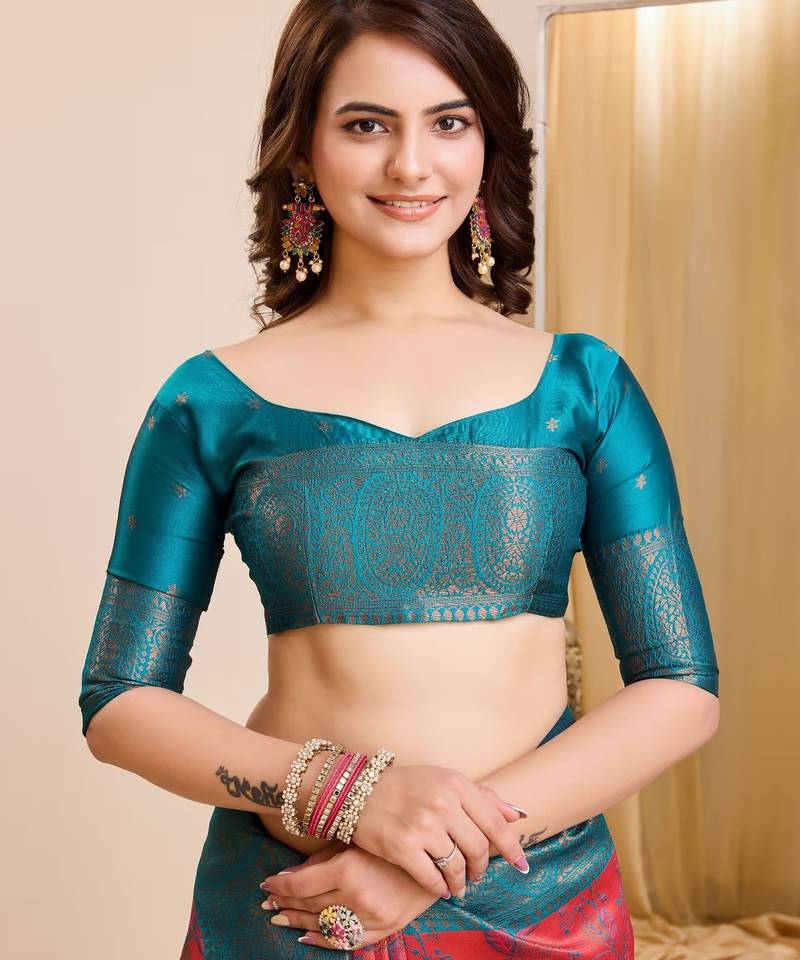 Product Name Gajri Rama Soft Art Silk Blend Banarasi Jacuard Work Designer Party Wear Saree With Unstitched Blouse Piece