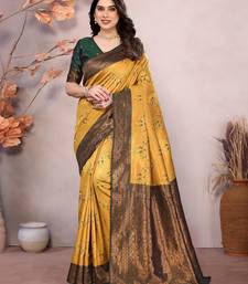 Gold green soft art silk banarasi jacuard work designer party wear saree with unstitched blouse piece