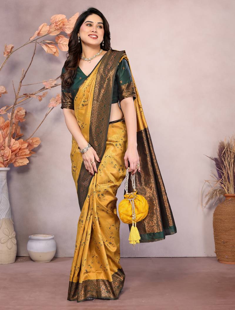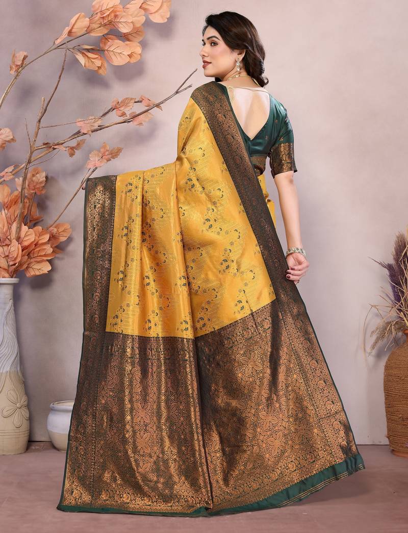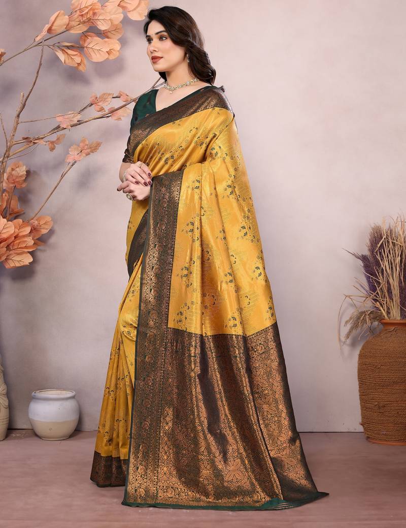 | Product Name | Gold Green Soft Art Silk Banarasi Jacuard Work Designer Party Wear Saree With Unstitched Blouse Piece | |