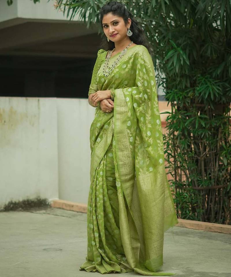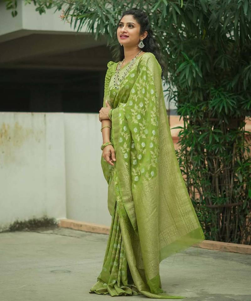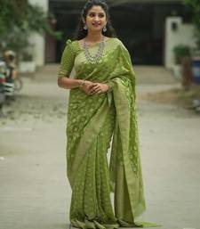 Green soft art silk banarasi saree with blouse