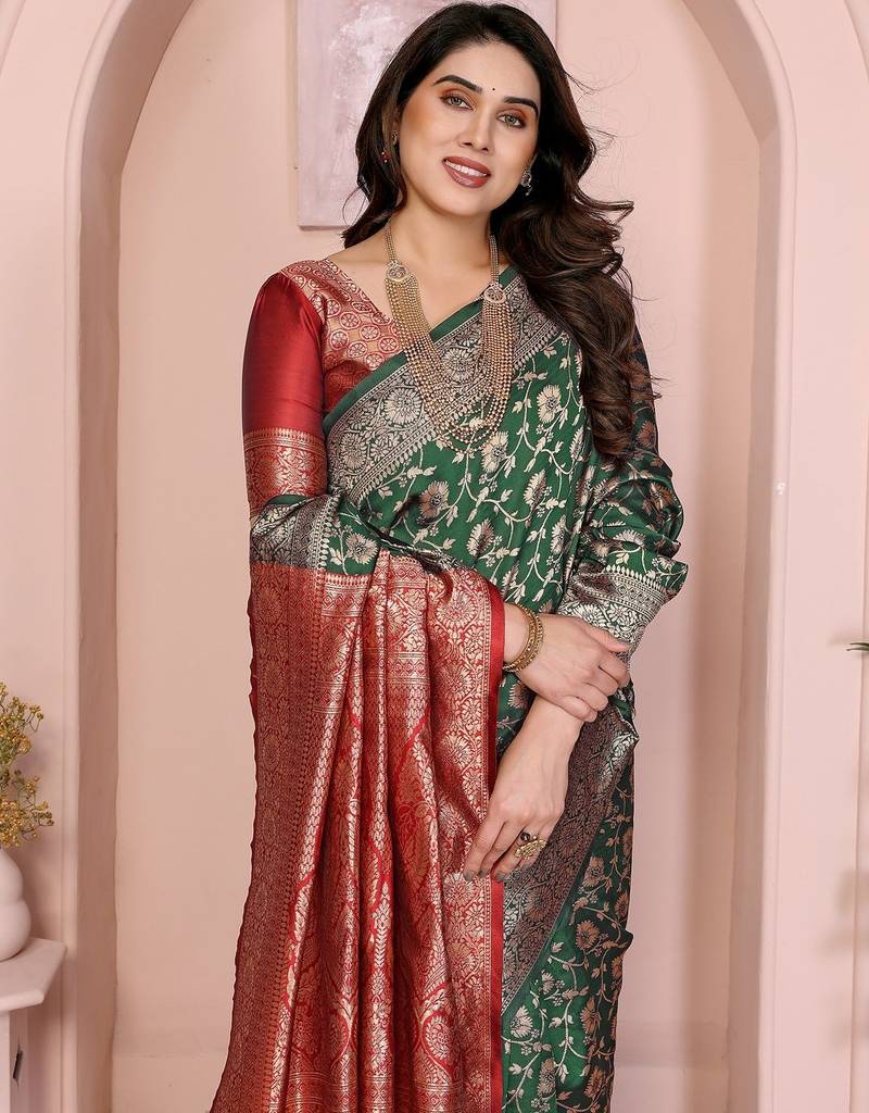| Product Name | Green Soft Art Silk Banarasi Saree With Blouse | |