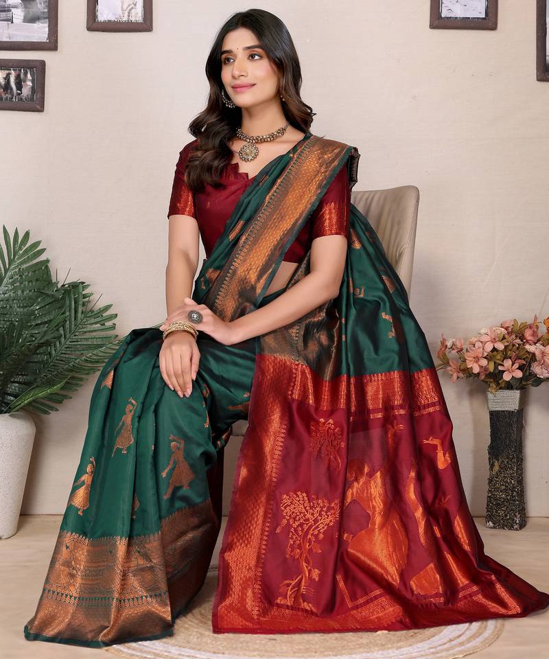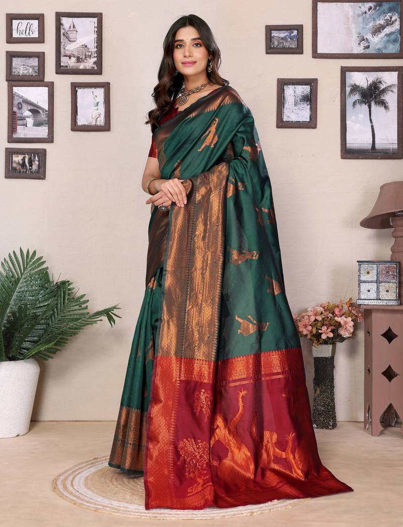 Green soft art silk banarasi saree with blouse